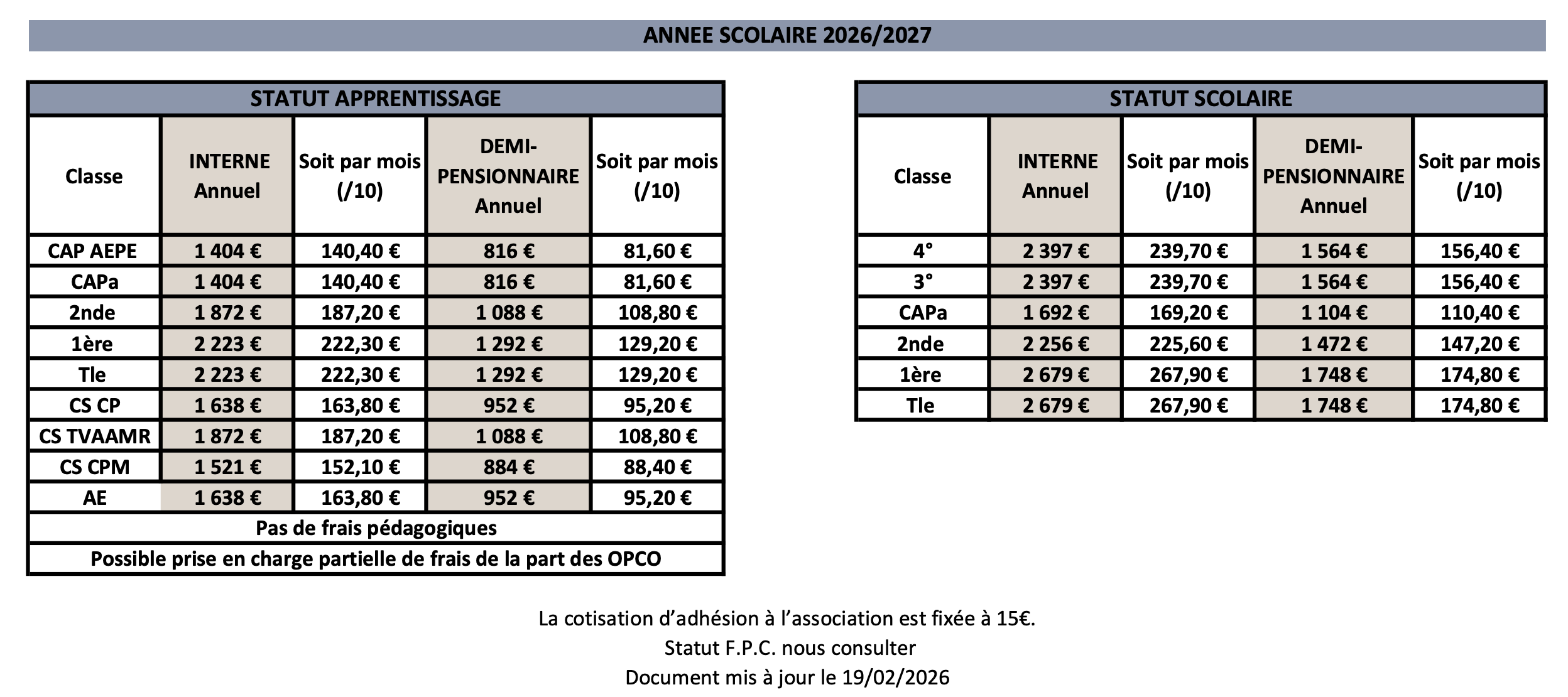 Tarifs
